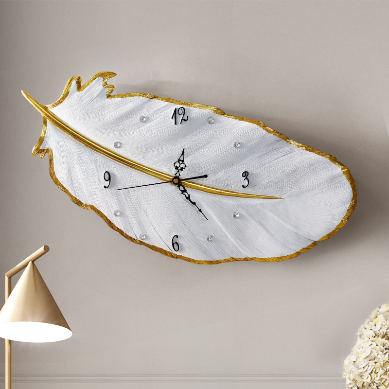 Feather wall clock Nordic light luxury clock wall hanging simple modern household clock Bedroom living room clock creative minimalist