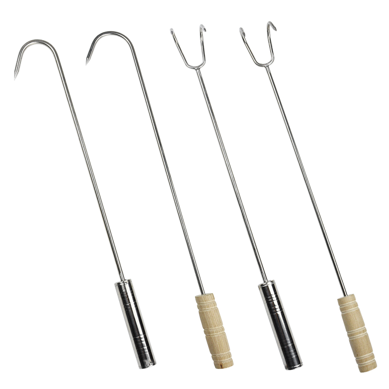Lengthened stainless steel wooden handle single and double hooks large and thick buckle meat hook grappling hook Fishing hook picking up garbage classification hook