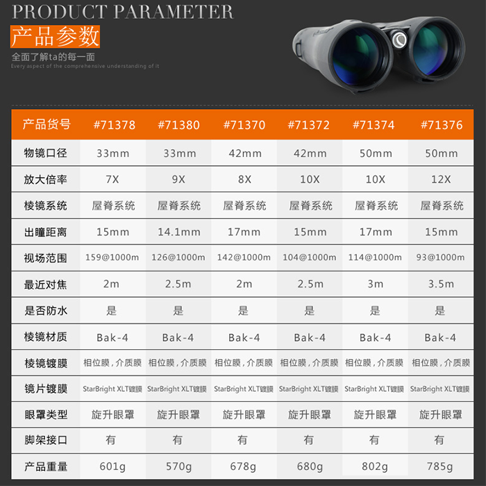 Diamond 7X33 9X33 9X33 8X42 8X42 10X42 10X42 10X50 10X50 Diamonds 12X50 Diamond 12X50