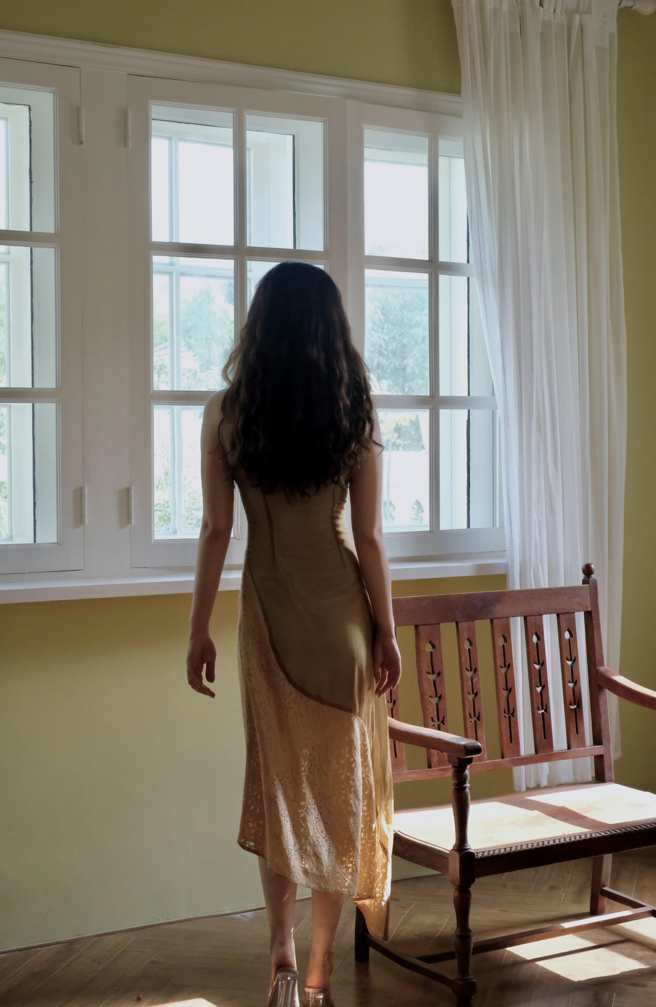 zisi Arbitrary Four Empty Hearse Art Sense Curve Splicing Skirt Comeback Ancient Lace long version closedown
