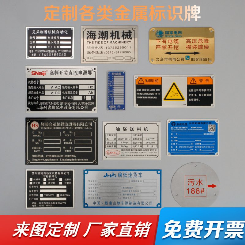Machine equipment nameplate custom silk screen LOGO cable LOGO plate metal sign aluminum plate fixed production stainless steel PVC laser marking sign corrosion copper iron brand sticker distribution box motor UV