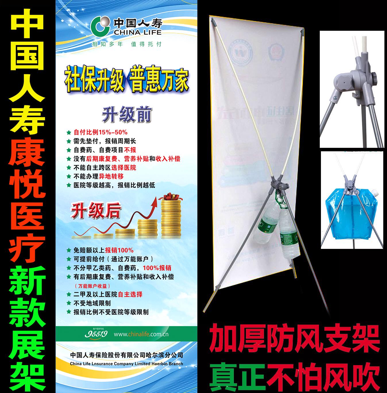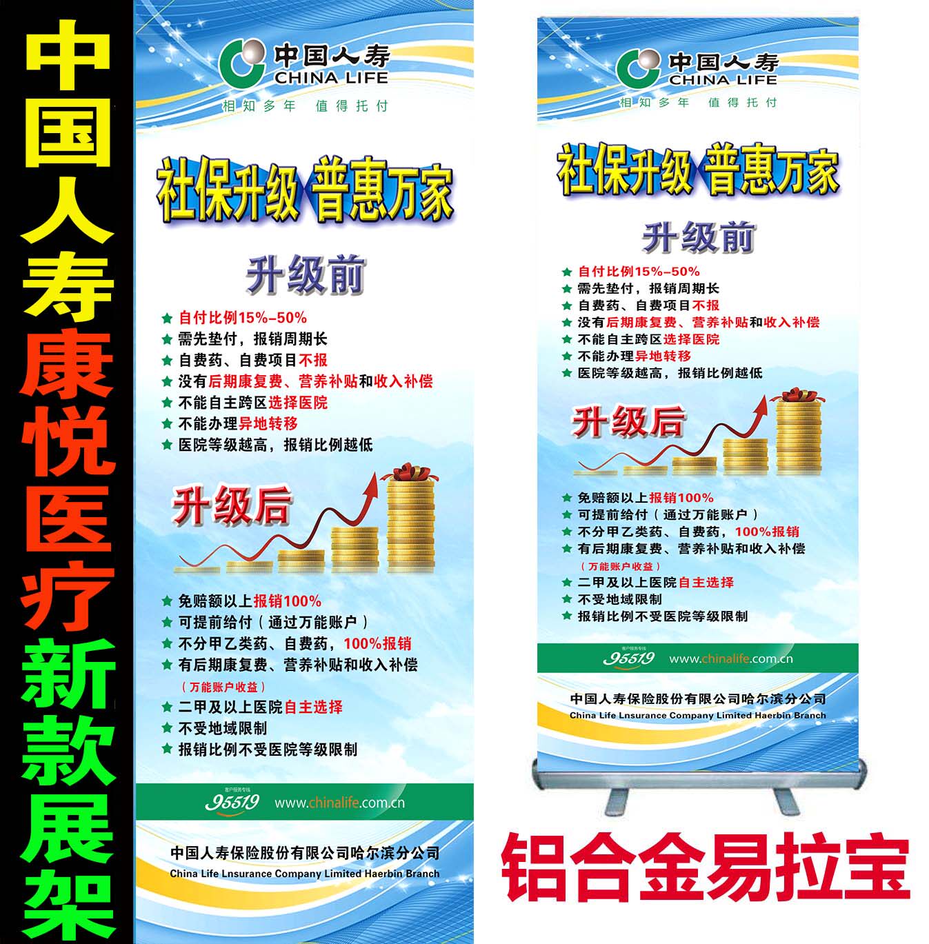 China Life Insurance Exhibition Rack Roll-up Kangyue Medical Breakthrough Social Security Exhibition Rack China Life Advertising