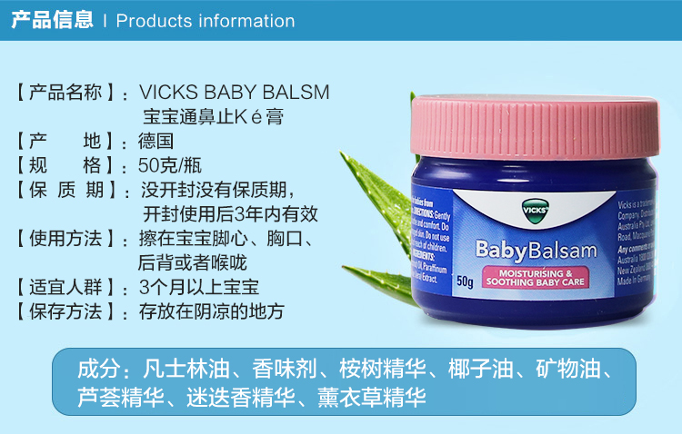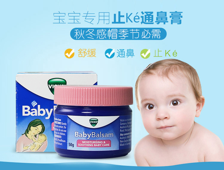 Australia's VICKS Babybalsamm through nose cream cough soothing cream baby boy child 50g