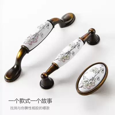 Integral cabinet drawer wardrobe ceramic handle modern simple new Chinese door handle European antique bronze cabinet door handle