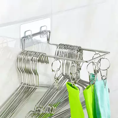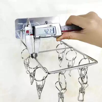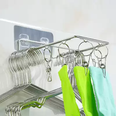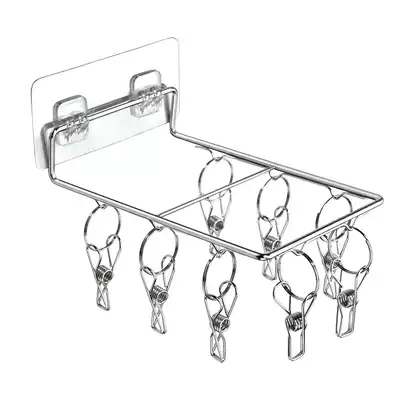 Adhesive stainless steel drying rack multi-clip underwear hook artifact multi-function household clothespin drying socks rack