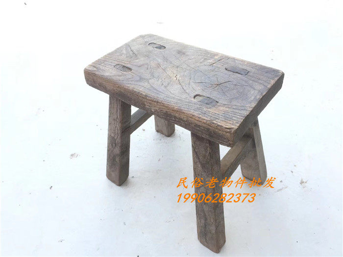 Folklore old objects in the 1970s and 1980s small wooden stool solid wood small bench nostalgic retro decoration farmhouse small dining table