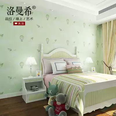Children's fun cartoon children's room non-woven wallpaper blue bedroom living room blue sky white cloud hot air balloon warm wallpaper