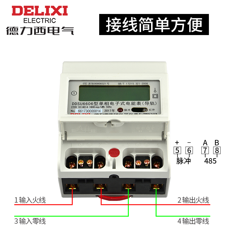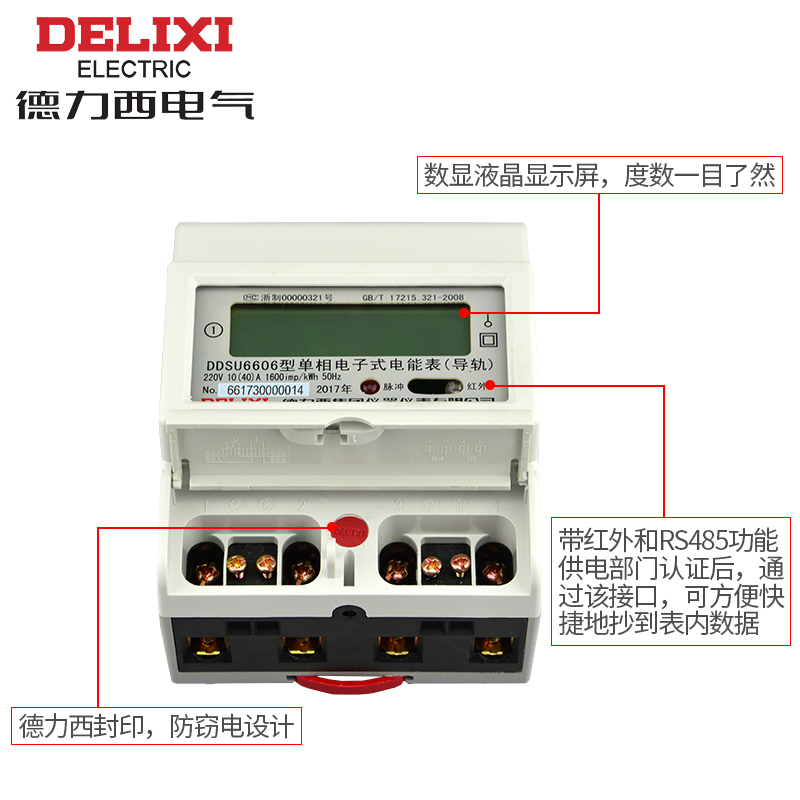 Delixi electric meter DDSU6606 household single-phase 220V electronic rail type LCD 485 watt-hour meter