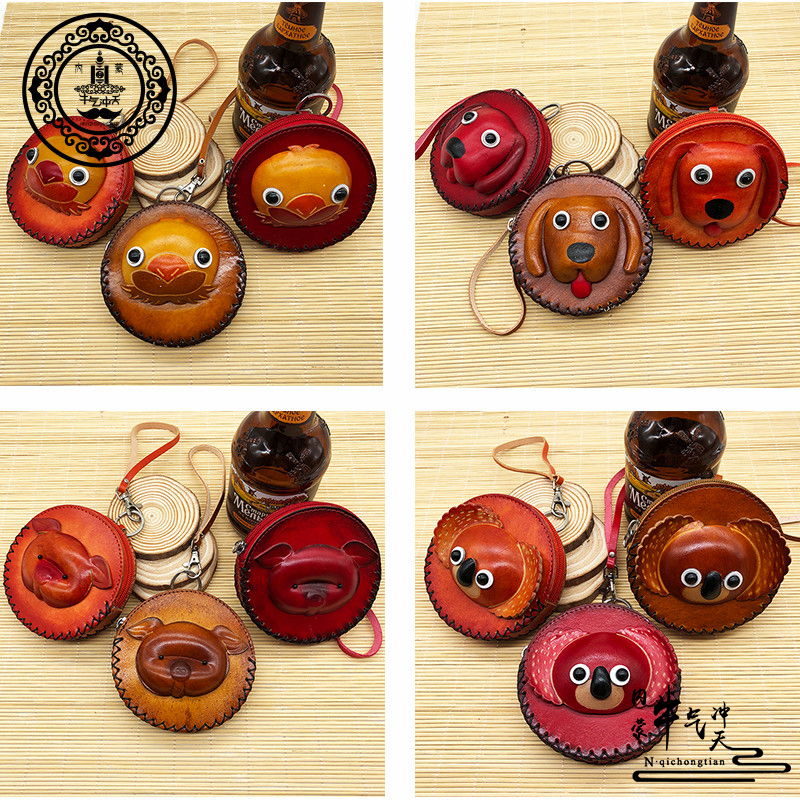 Inner Mun Featured Handmade Mini Small Bag Hand Animal Zero Wallet Card Stuffed Cow Leather Animal Bag 12 Zodiac Creative Bag
