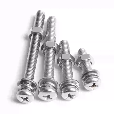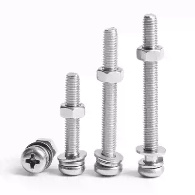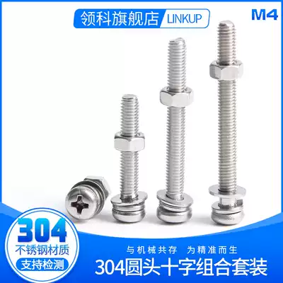 Screw and nut set 304 stainless steel round head cross combination set with screw nut flat pad spring pad M4