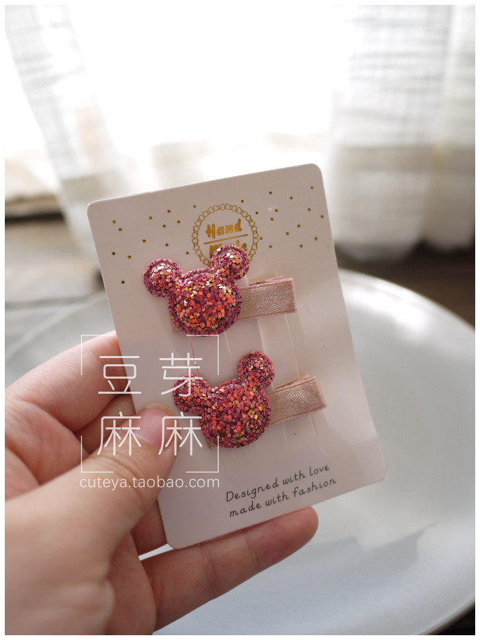 Sequin Full Bag Cartoon Rice Rat Korean Version PU Handmade Baby Girl Child Crown Stars Hairpin Hairpin Hairpin Hair Clip
