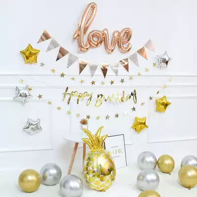Net Red birthday party decoration metallic balloon birthday party decoration background wall supplies set