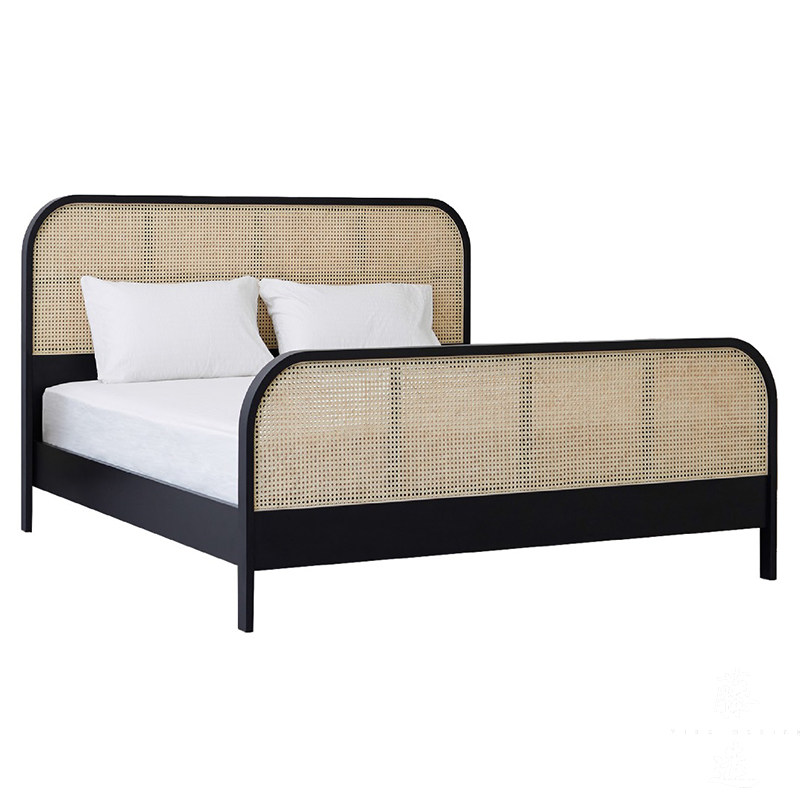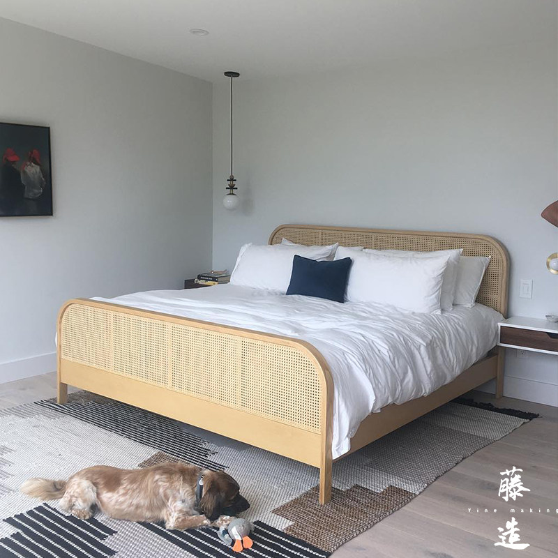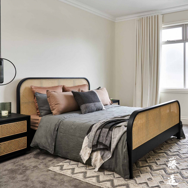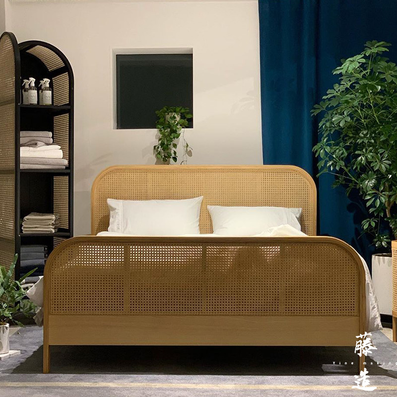 ins Nordic rattan furniture teng bian chuang 1 8 meters double real wood bed and breakfast hotel Inn really teng chuang new Chinese style