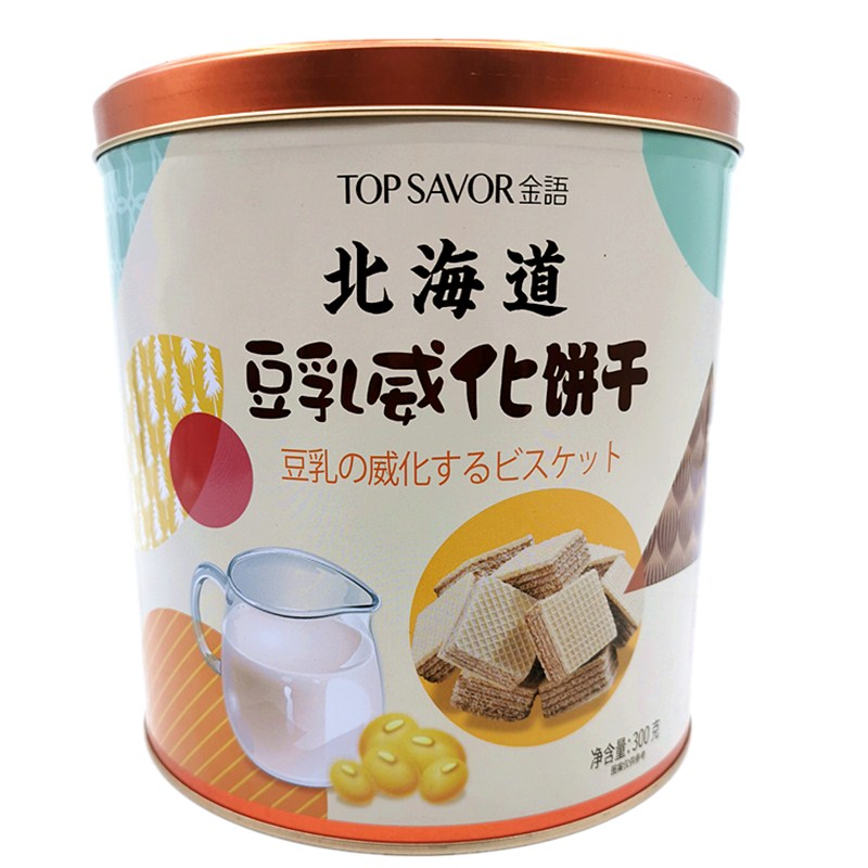 Golden Language Hokkaido Soymilk wafer cookies 300g tin bucket Durian flavor Macau office leisure net Red snacks