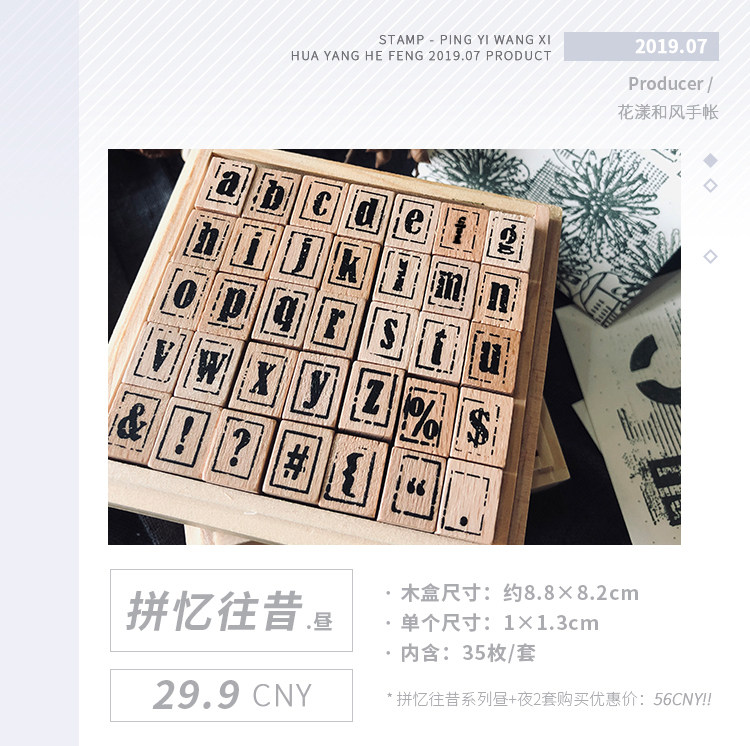 Flower Yang and wind spell memory of the past day and night Wooden seal set text seal hand account decoration
