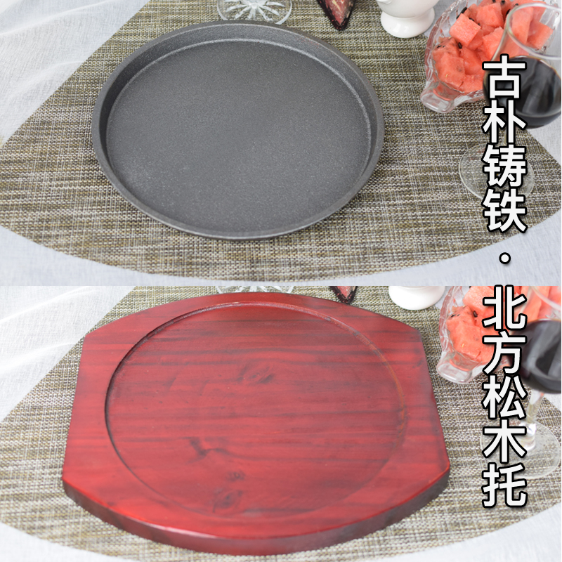 Teppanyaki plate fried steak plate non-stick meat induction cooker baking plate household cast iron round iron plate burning iron plate commercial