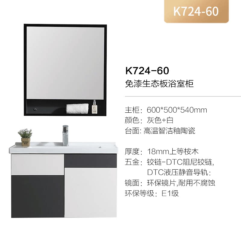 Slow track Lacquered Plate Hung Wall Style Integrated Bath Cabinet Grey Plus White High Temperature Wise glazed ceramic basin K724