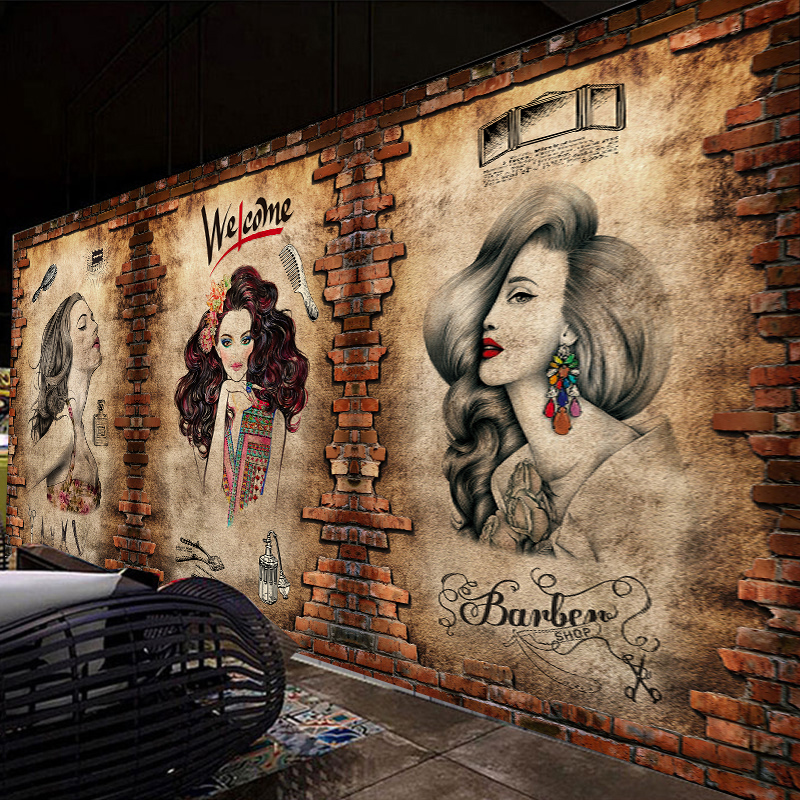 Beauty Hair Shop Decoration Painting Retro Personality Creative Hairstyle Self Adhesive Wall Stickup Hair Salon Hairstyle Shop Poster Custom