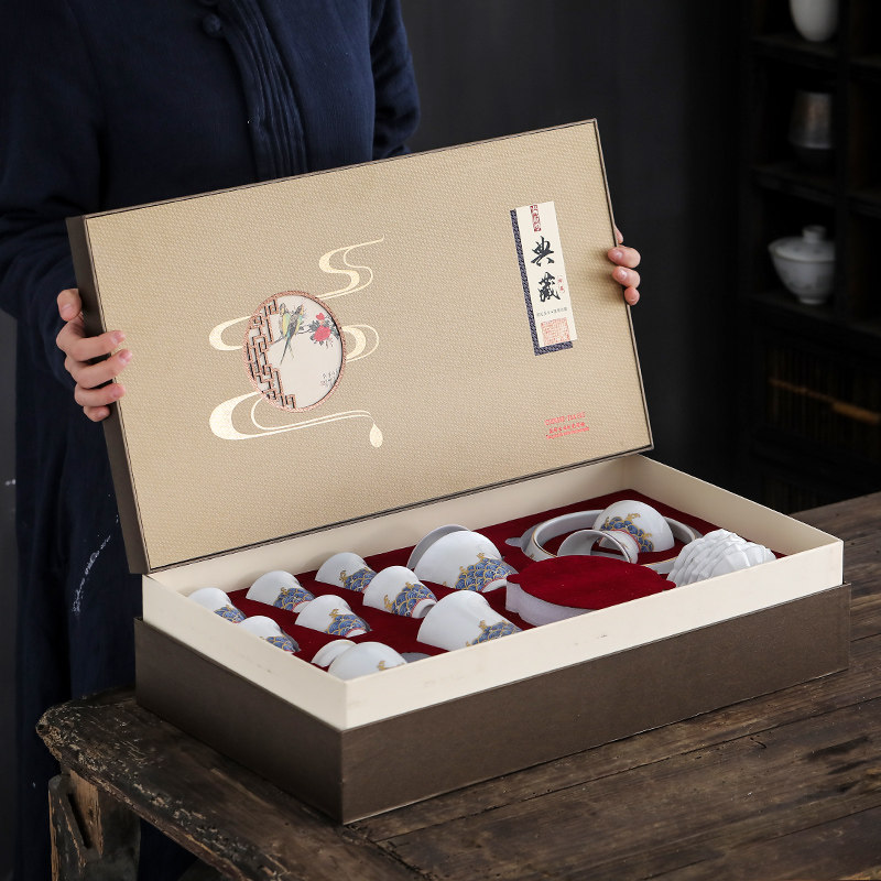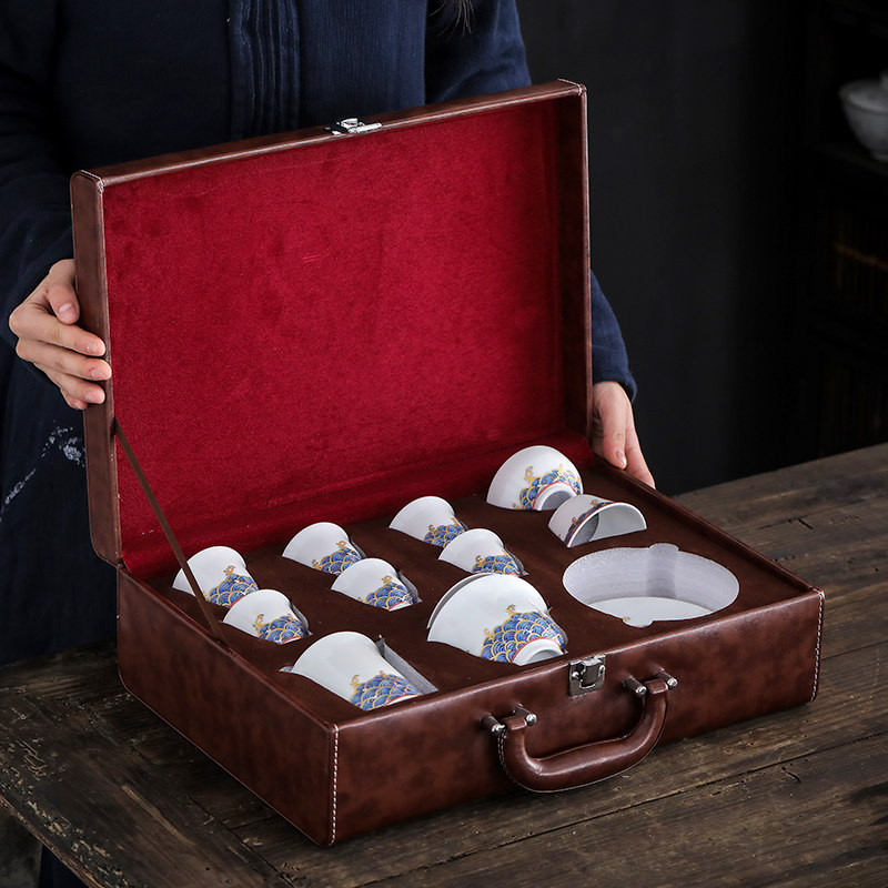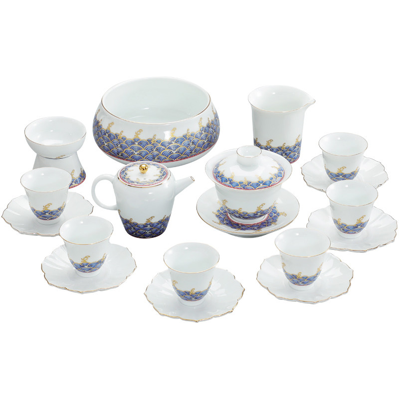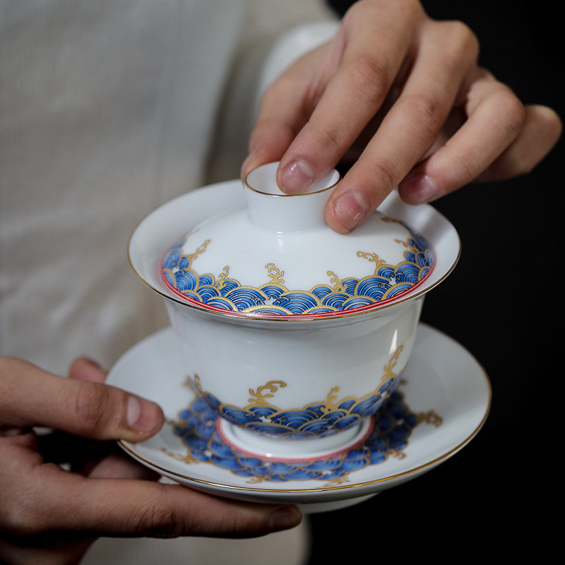 Enamel color wave household Kung Fu tea set Chinese simple gold drawing portable set with gift box cover bowl Teapot