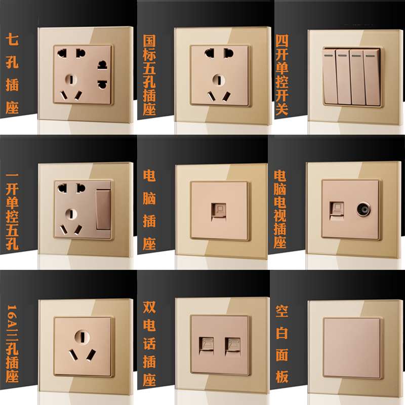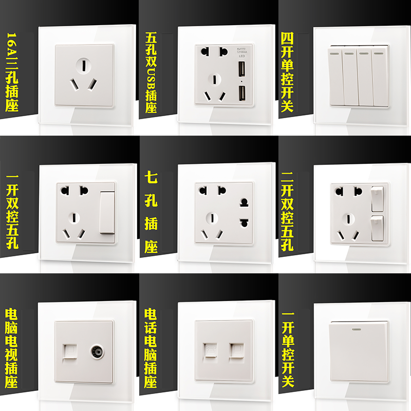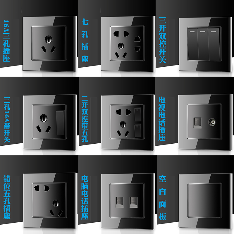Five-hole 10A socket dislocation five-hole 10 socket 16A three-hole socket five-hole double USB socket seven-hole socket computer TV socket telephone Computer socket telephone TV socket double computer socket