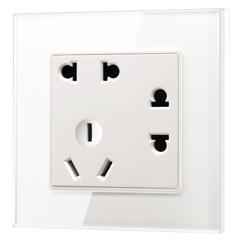 Tempered glass socket panel porous household 86-type wall concealed one-open five-hole power socket 5-hole 7-hole white