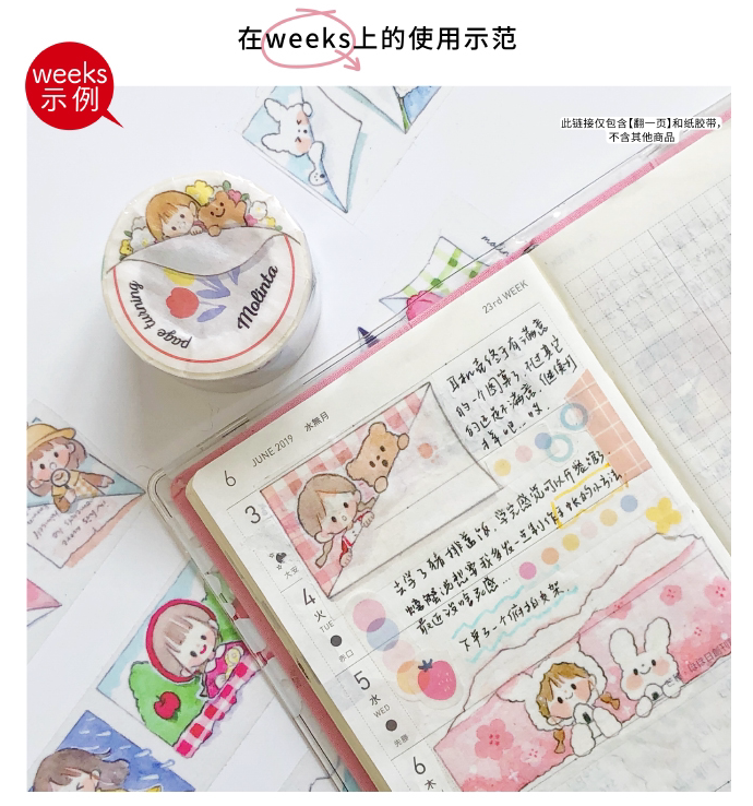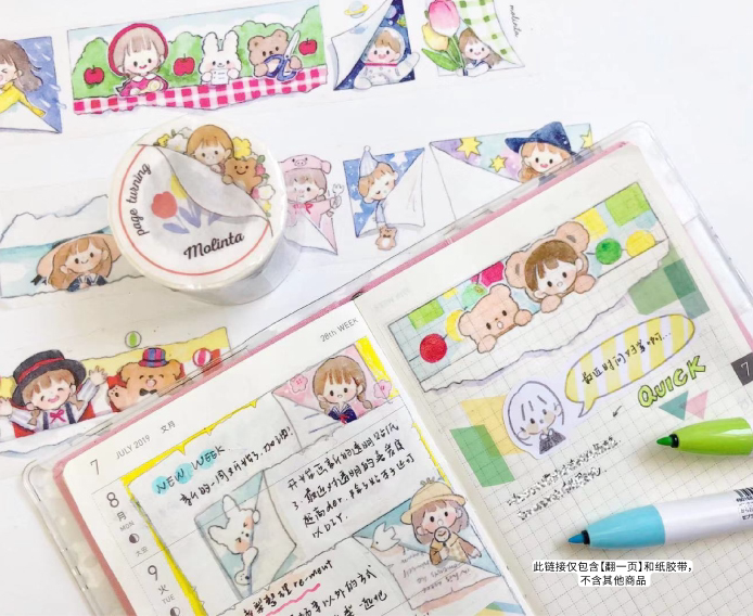(Girl hand account)King Zhuo Molinta Turn a page and paper tape Cute Azuo tape in a whole roll