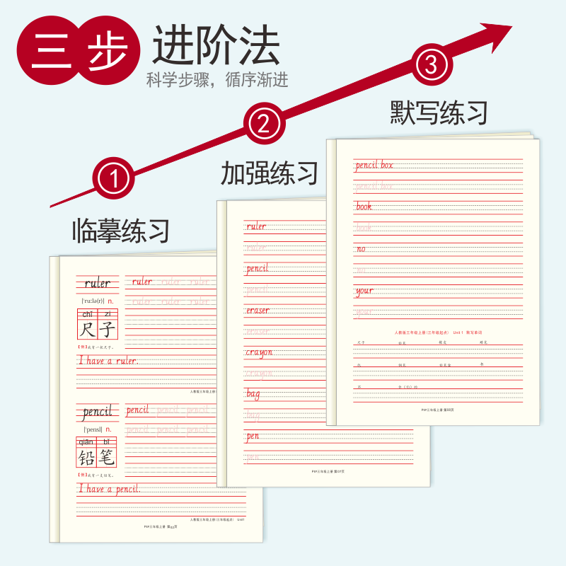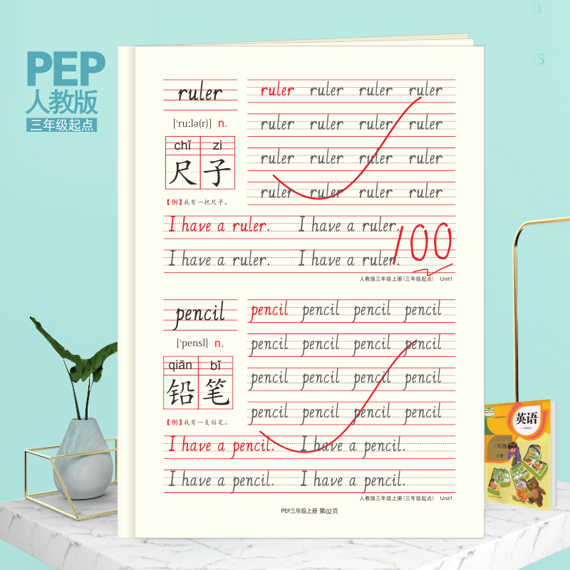 Primary school students 3-45 6th grade English Practicing Calligraphy 2022 pep People Teach Edition Synchronized up and down Volume of English single characters Sketch Red Book 26 letter case 3rd grade starting 3-4-5-6 chill