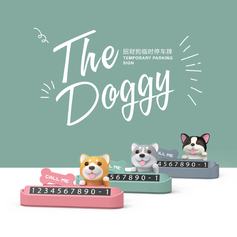 The Doggy lucky dog temporary parking card creative cartoon car mobile phone number plate car decoration ornaments
