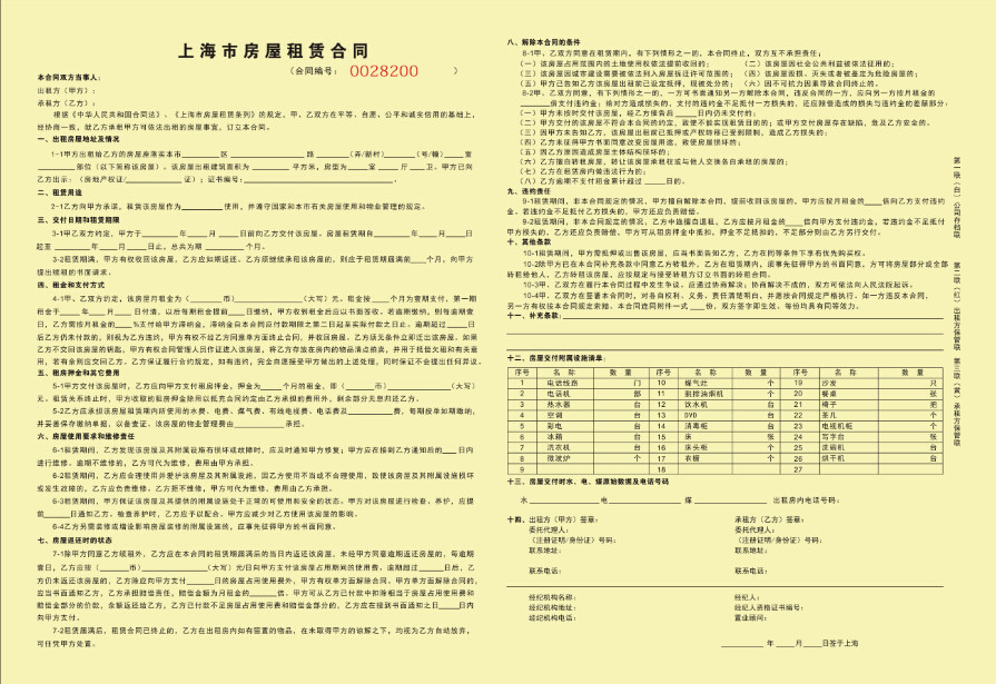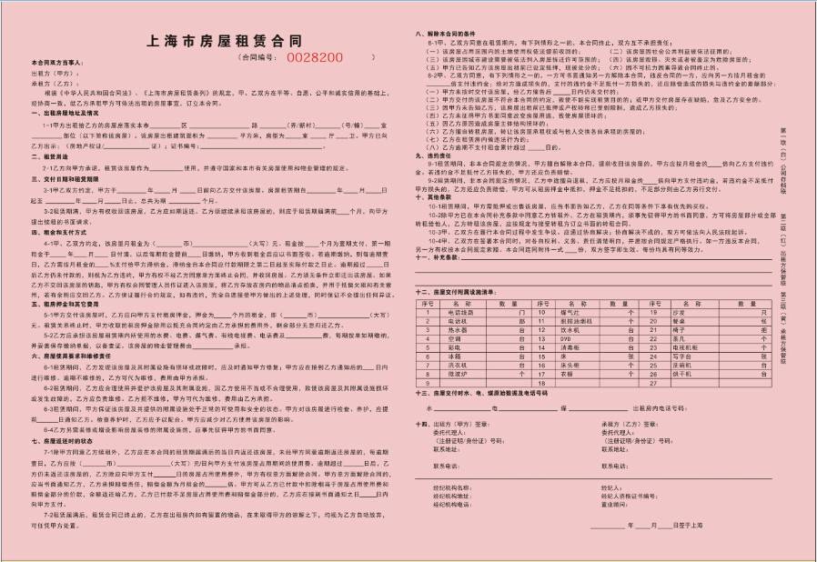 Shanghai Real Estate Intermediary Company Leasing Rental Contract Rental Agreement No Carbon Rewritten 3 United Single Contract