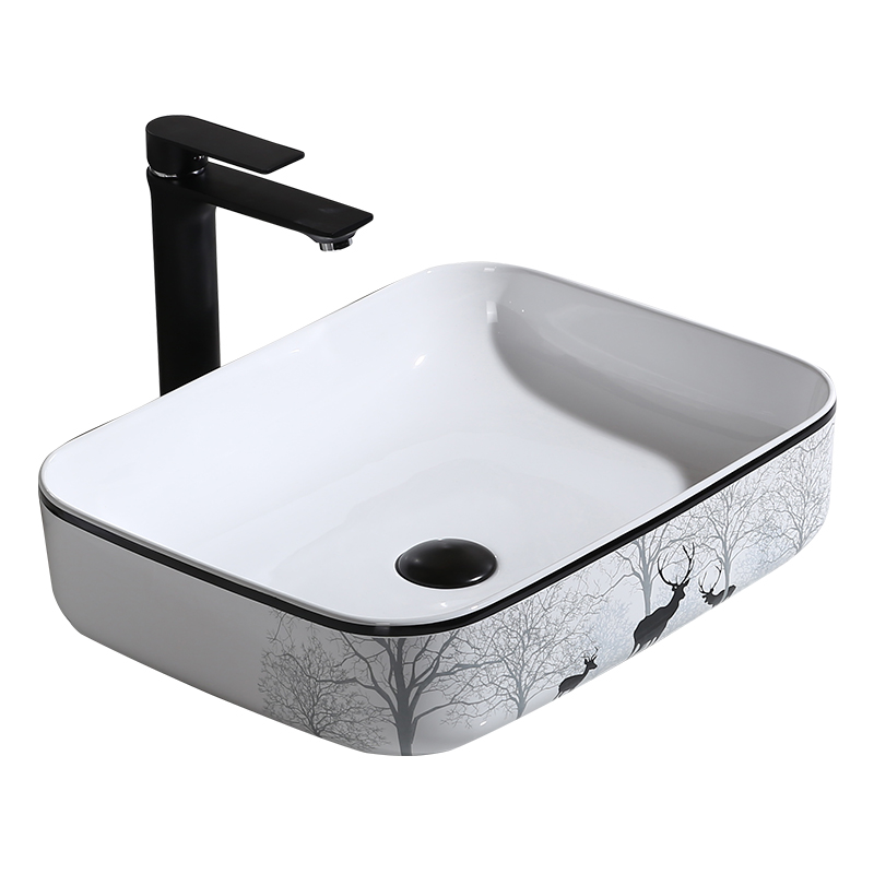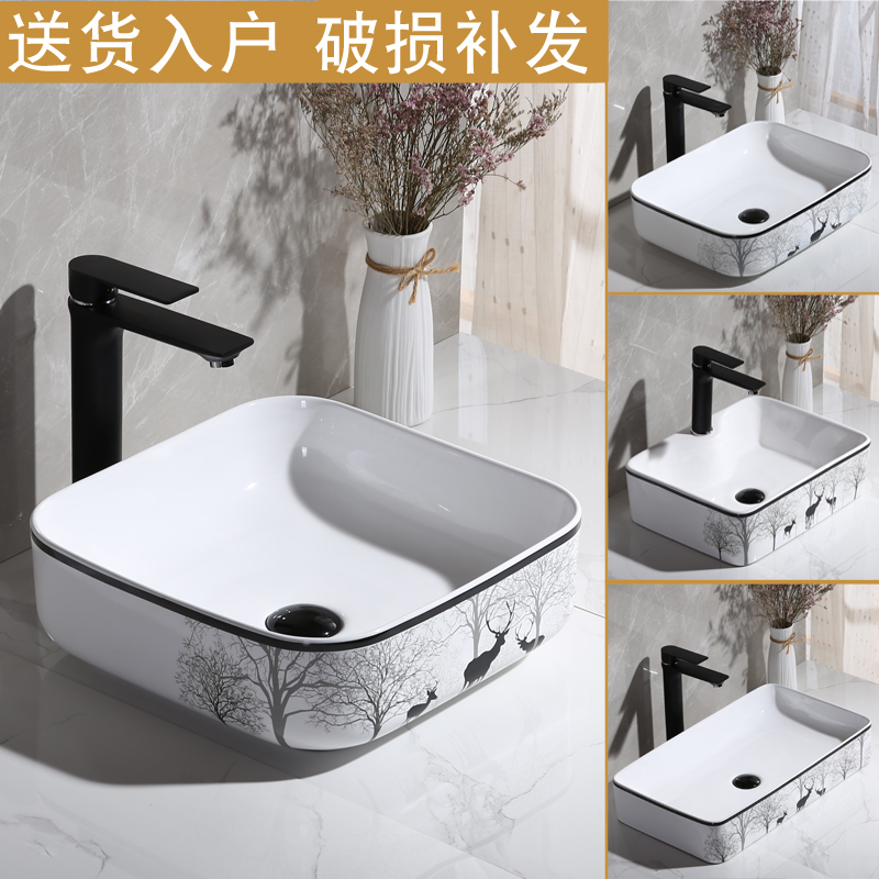 New Chinese-style ceramic countertop basin square washbasin art basin round basin black home washbasin