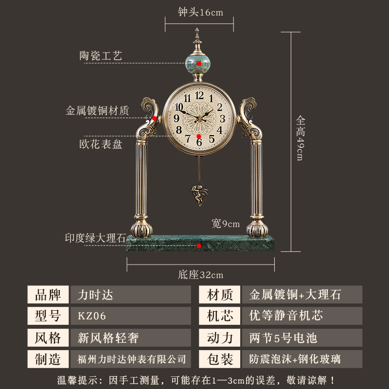 American light luxury retro desk clock living room desktop clock personality desk clock bedside table silent pendulum clock atmospheric clock watch