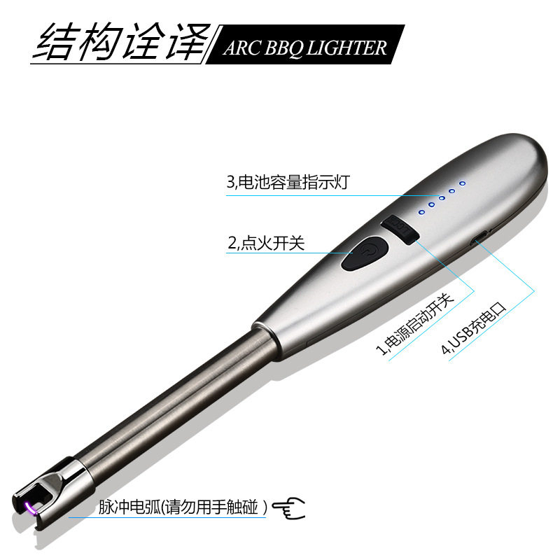 Creative USB Pulse Arc Ignition Gun Metal Windproof Charging Lighter Barbecue Portable Electronic Ignitor