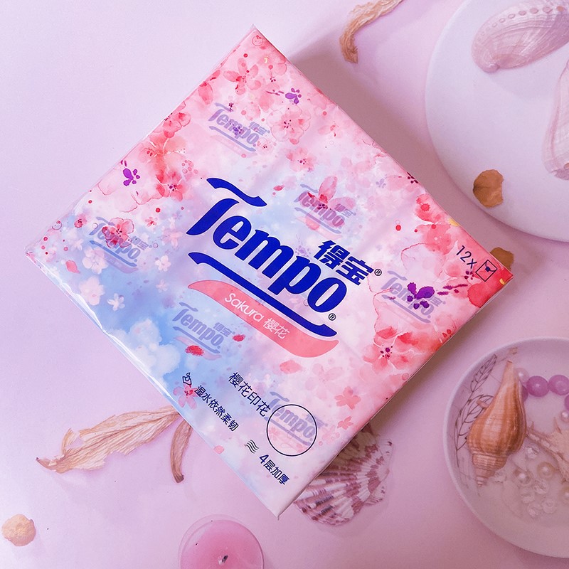 Tempo DUPLO handkerchief paper cherry blossom scented Debao paper towel small bag cute girls print wet water napkin