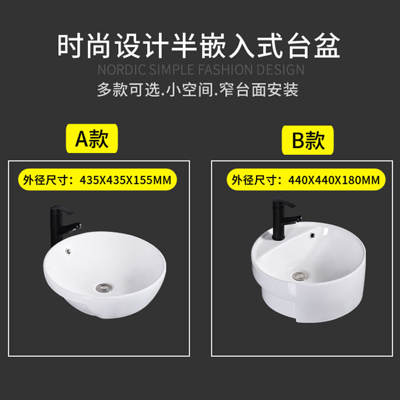 Semi-embedded washbasin Ceramic hand washing Semi-hanging basin On the table Ultra-narrow washbasin washbasin Square round Taichung basin