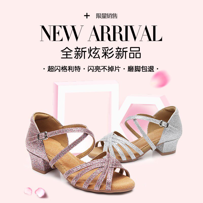 Cyanine Superior Children Professional Latin Dance Shoes Girl Girl girl Soft bottom low and high heel dance shoes Summer Early childhood beginner