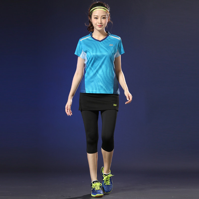 2022 New Badminton Suit Women Dress Pants Suit Summer Speed Dry Short Sleeves Workout Korean Version Round Collar Tennis Sportswear