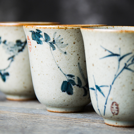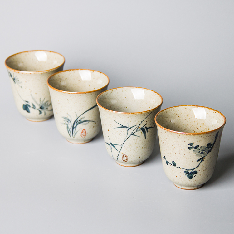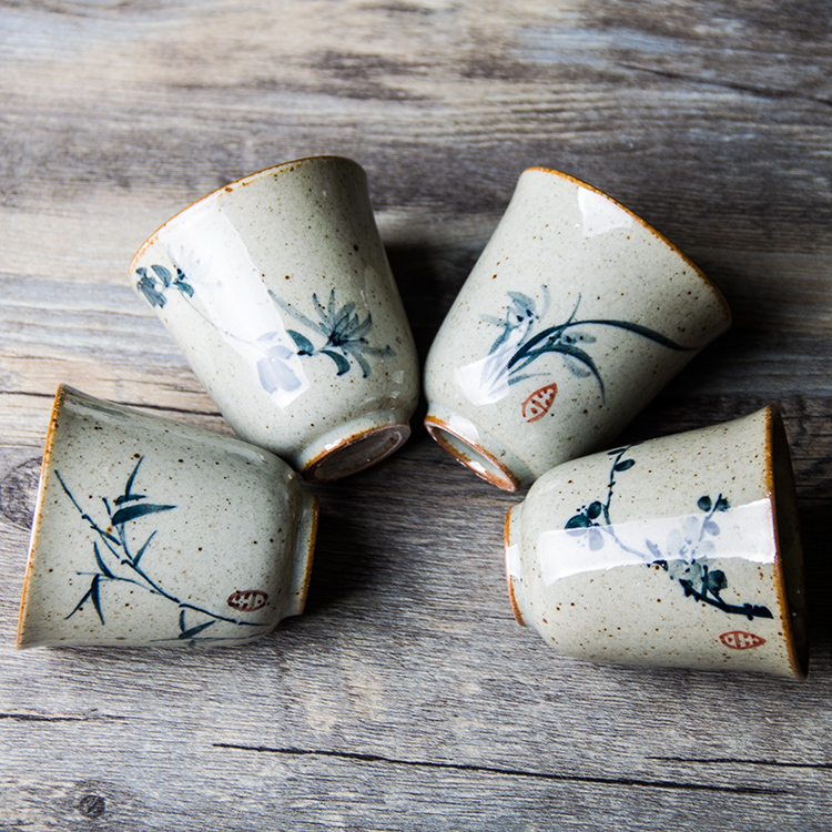 Hand-painted ceramic tea cup retro scent cup rough pottery handmade tea cup Jingdezhen blue and white porcelain kung fu tea set single cup