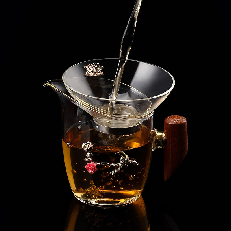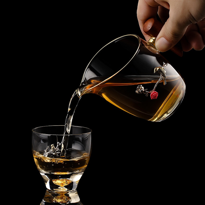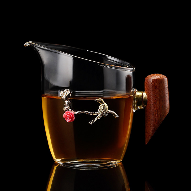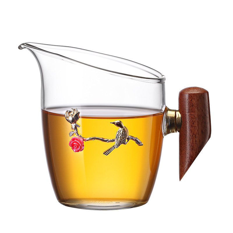 Inlaid silver glass fair cup transparent heat-resistant high temperature tea divider kung fu tea set fair cup constant temperature treasure tea drain set