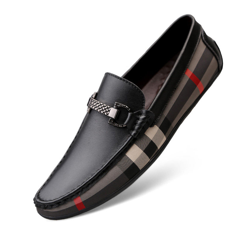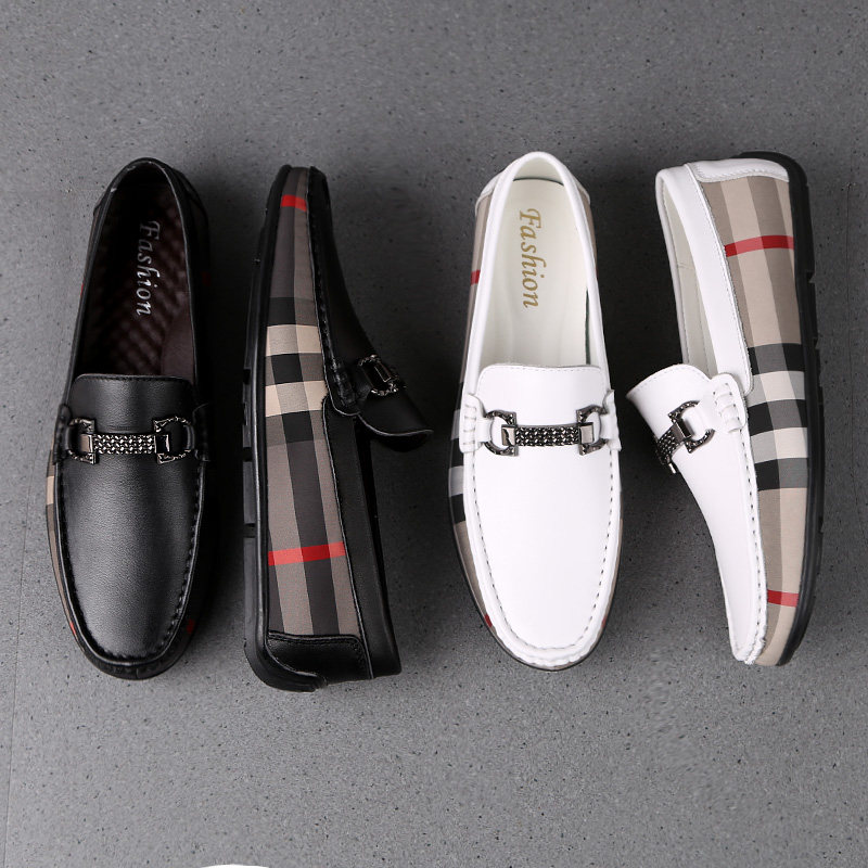 European Station Men Genuine Leather Casual Leather Shoes Spring Autumn New White Bean Bean Shoes Soft Bottom Breathable Korean Version 100 Hitch Shoes