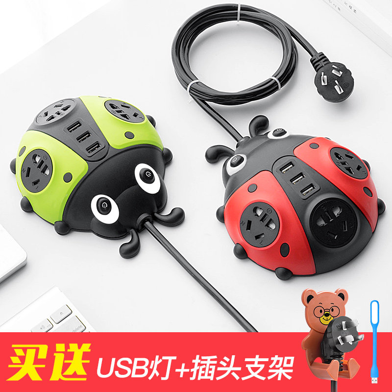 Cute plug-in multi-functional extension cord socket panel porous plug-in board with USB wiring board can climb wall plug-in row
