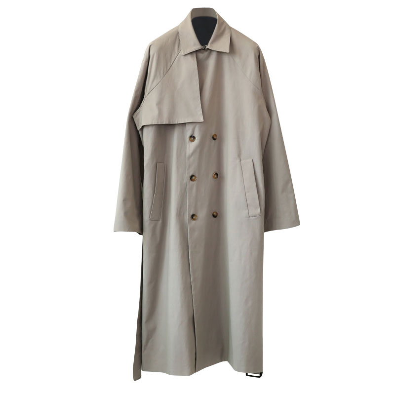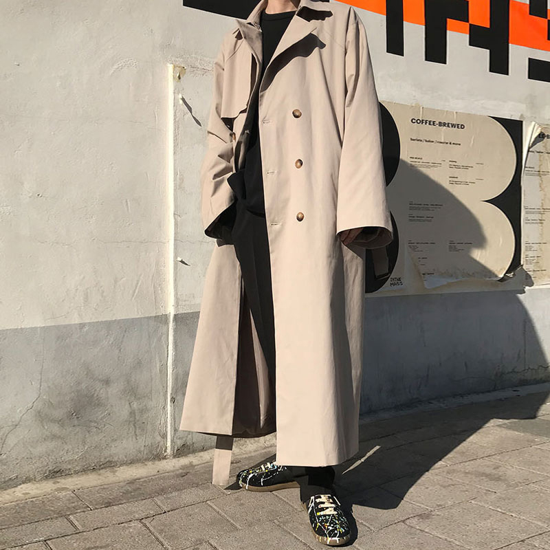 Windbreaker men's long version khaki Korean version of the trend brand British style long version handsome over the knee double buckle slim