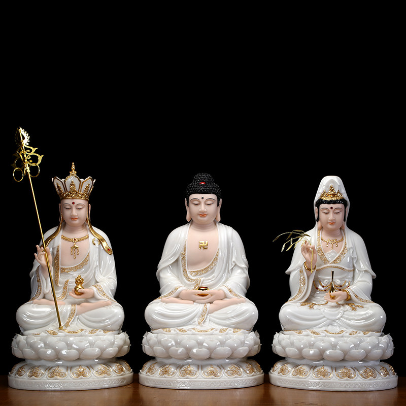 Han white jade Shakyamuni Buddha statue ornament stone carving Three Treasures Buddha Rulai Buddha statue Amitabha Buddha statue Medicine Buddha seated statue