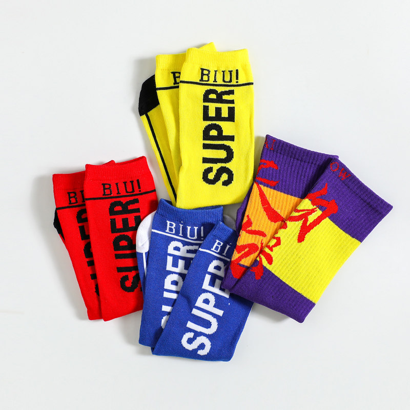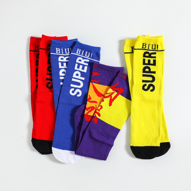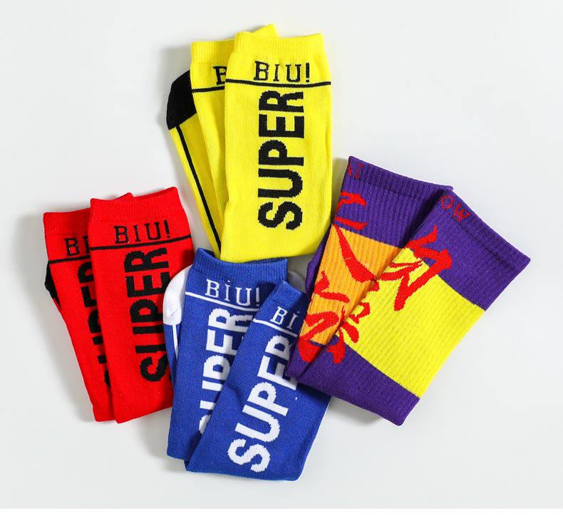 Yellow socks Blue socks Red letter socks Purple socks