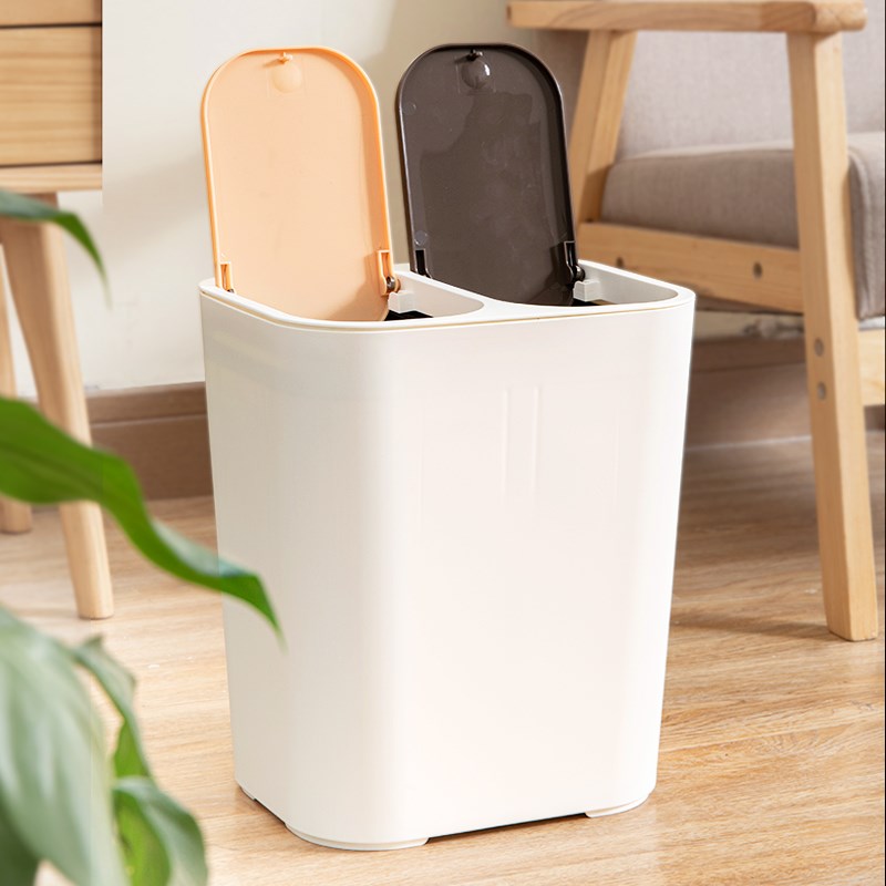 Day Style Home Double Lid Dry Wet Separation Bin room Living room Living room Bedroom Press-type Bomb Lid Small Trash containing cylinder