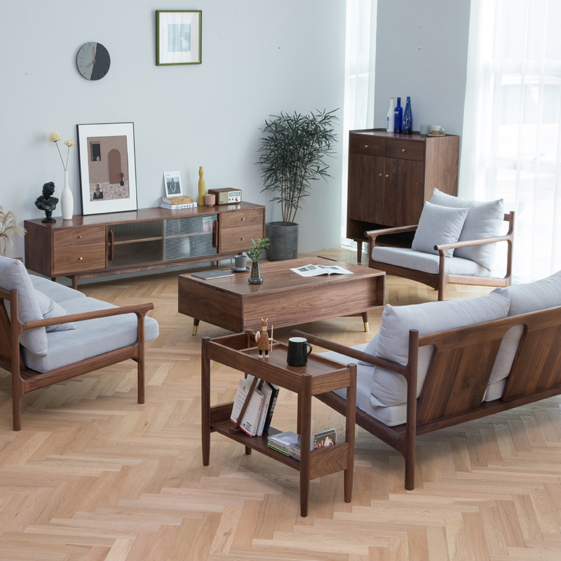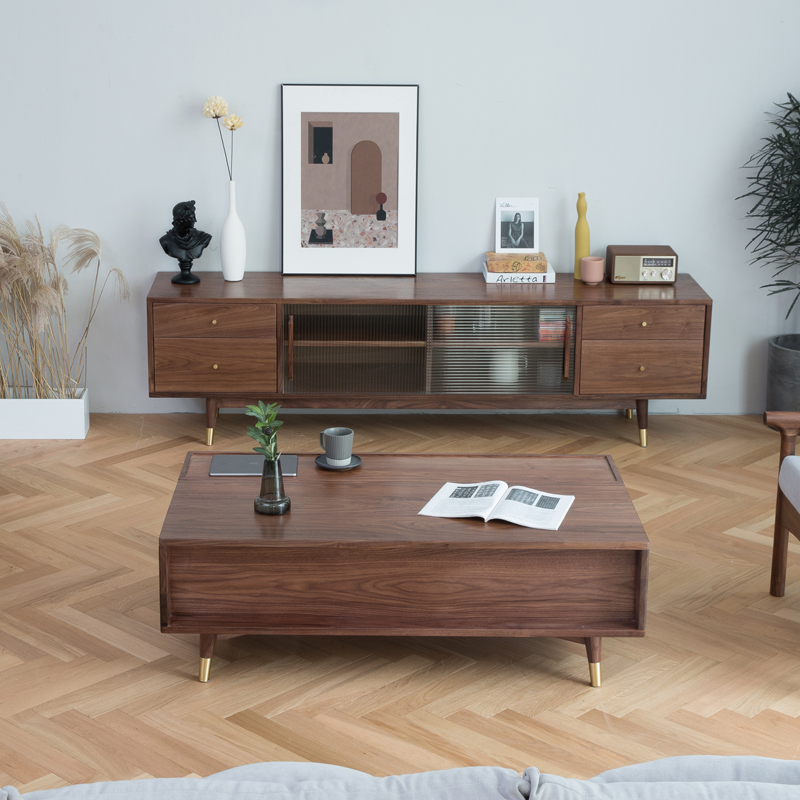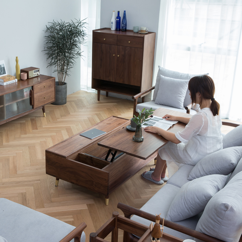 Minimalist modern Nordic Multi-functional tea table solid wood oak with liftable tea table for small family dining table