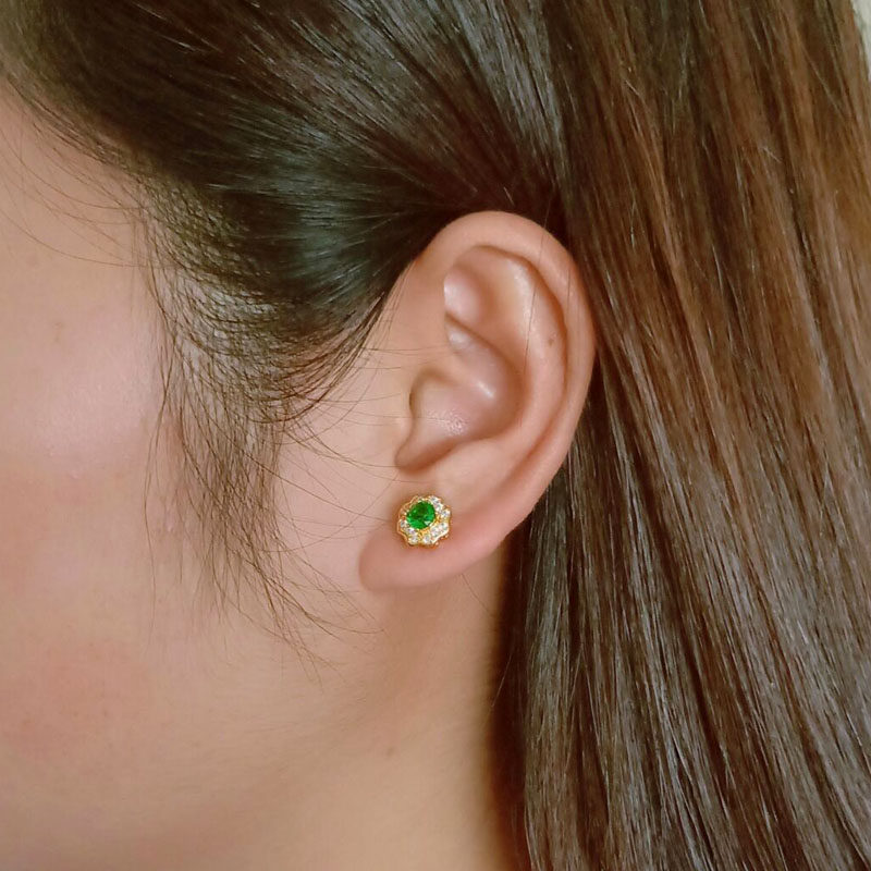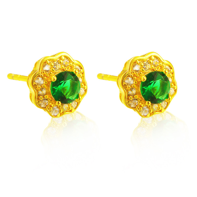 Gold stud 9999 gold women men's ruby emerald earrings color treasure set with crystal for lovers