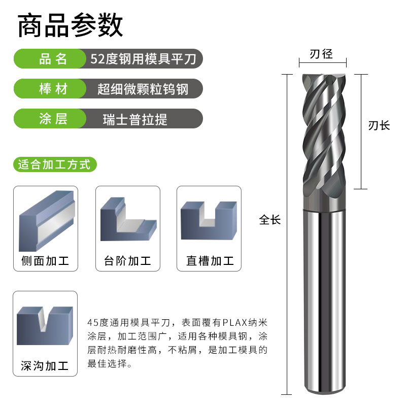 Frandy 65 degree tungsten steel milling cutter 4 - edge carbide CNC CNC vertical milling cutter 45 - degree die steel stainless steel