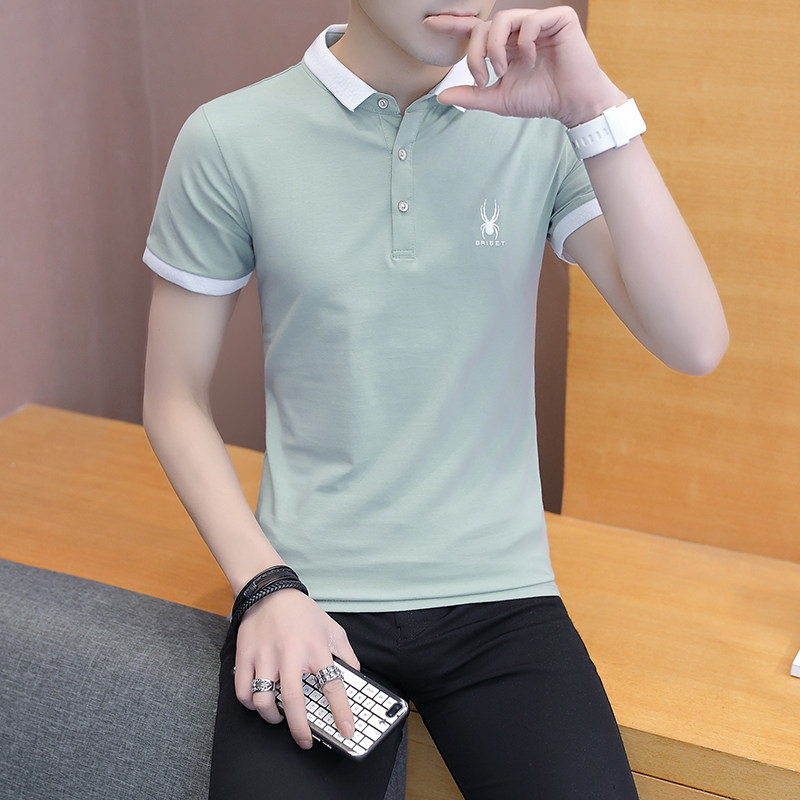 Summer short sleeve T-shirt men's cotton lapel half sleeve slim POLO shirt casual youth men's T-shirt fashion handsome
