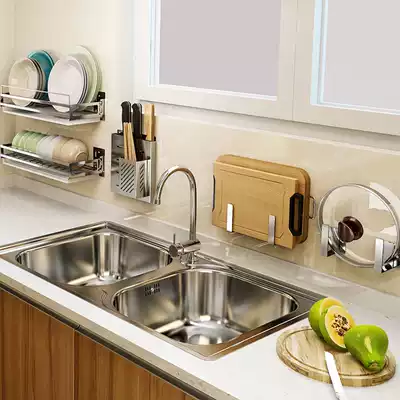 Pot cover rack (no-to-order punching) cutting board rack (dual-use for-free punching) double-grid chopsticks cage (no-to-order punching) dish rack (no-to-order punching dual-purpose) adjustment