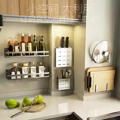 Punch-free kitchen shelf wall hanging board rack dish dish rack seasoning holder pot cover knife holder stainless steel